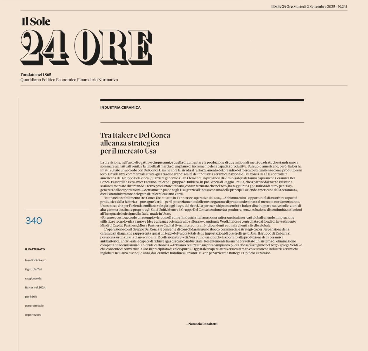 TRA ITALCER E DEL CONCA ALLEANZA STRATEGICA PER IL MERCATO USA